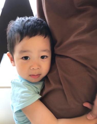 ママにガシッとしがみつく。。。そんな君の表情に、やはりメロメロです。。