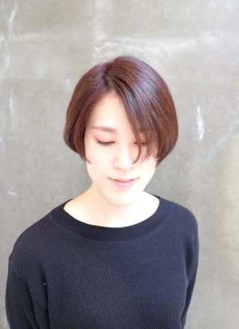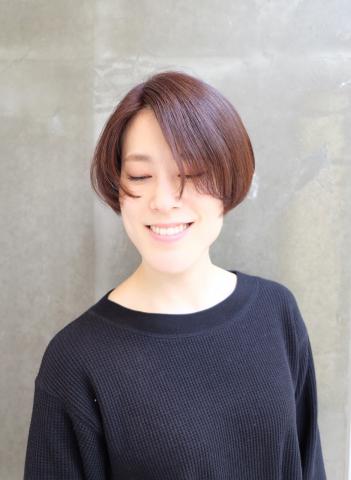 髪色は、アプリコットブラウン。ツヤ感と女性らしさを演出です。