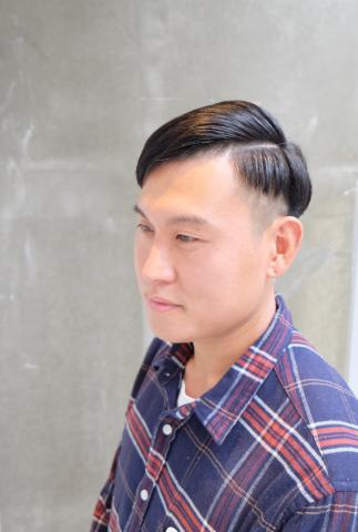 サイドパートの分け目は、もちろん直バリ(直接バリカンをいれること)です。