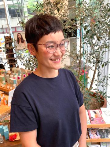 ポイントは、とにかくシンプルに似合わせカットした前髪です。フレームラインが涼しげで素敵。