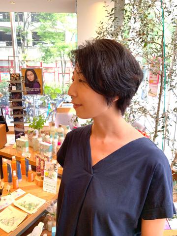 重めの肩レングスボブスタイル → かろやかに夏のショートボブスタイルにチェンジ。