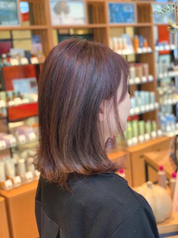 一度、お流しをはさみまして、レッド強めのチェリーブラウンに染めあげました!素敵!