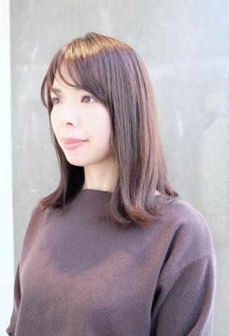 鎖骨レングスのミディアムスタイル。ベースのワンレングスを、切りっぱなしCUTします。