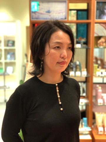 ヘアカラーは、こっくりと深みあるヴァイオレットを選択し、スタイルの量感は軽く仕上げました。