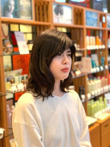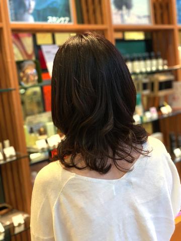 そんなホットパーマには、トリートメントカラー「D+」を組み合せて。NEWスタイルの完成です!