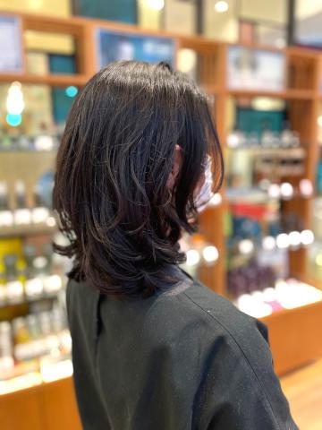 毛先に重さを残しながらカットしてみました。ハリのある毛束の動きがポイントです。
