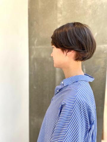 目指せ!「マッシュボブ」。今回は、なんとか頑張って「マッシュ風ショートボブ」。(笑)。