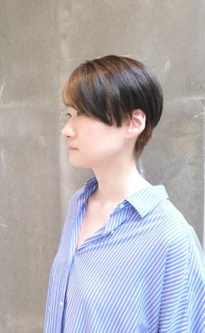 サイドとバックはタイトにカット。トップの長さと丸みを引き立てます。