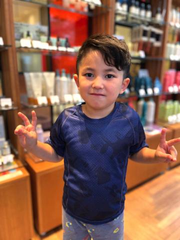 ご子息の、強めにしっかりと存在感を放つ、2個あるツムジについてのご相談をうけました。