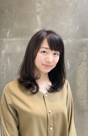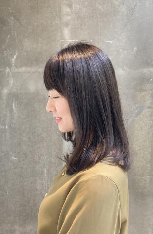ベースカットは鎖骨レングスのミディアムスタイル。毛先にワンカールをプラスしました。