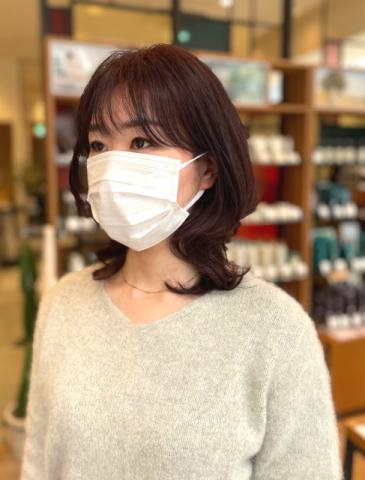 こっくりと深みのあるチェリーブラウンでカラーリング。ツヤ髪へ。