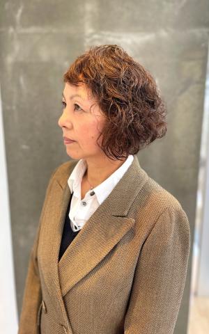 ナチュラルなクセ髪をいかした前下がりのボブスタイルが魅力的です。