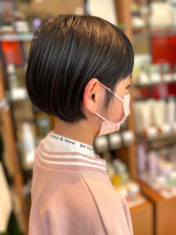 お姉ちゃんはショートボブ。タイトにビシッと抑えをきかせて仕上げます。