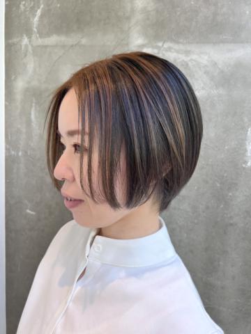 ワンポイントのデザインカラーをONしてみました。ベースは6トーンのアッシュブラウン。