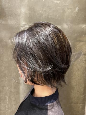 細く散らしてプラスしたハイライトが、シンプルなスタイルにナチュラルな立体感を与えます。