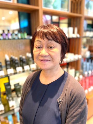 ヘアカラーには、ツヤツヤ仕様の明るめオレンジブラウンを選択。優しい雰囲気が溢れ出します。