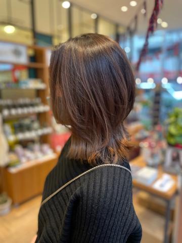 丸みのあるシルエットの外ハネも可愛らしいのですが、少しだけイメージチェンジ!