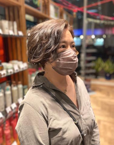細く繊細にチップを取ったハイライトをいれて、シャンプー台にてトナーON。