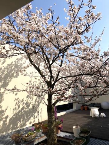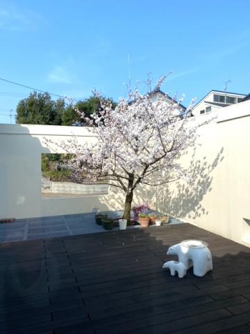 今年もテラスの「KOHARU」chan。旧、ジグソー。現、サンタのテラスの1本桜!!