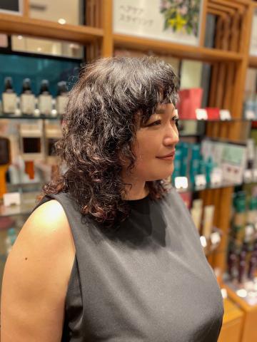 ペタリとつぶれやすいクセ髪に、酸性のホットパーマでアプローチ。クルッとフワッとカールをON!