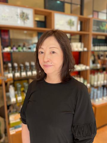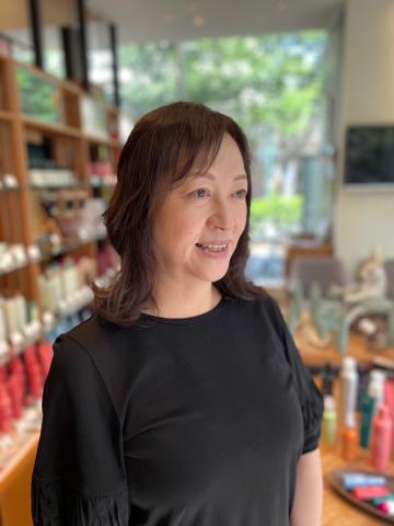 バックに設定した後ろ頭フンワリポイントからローレイヤーをプラス。女性らしく菱形バランスへ。