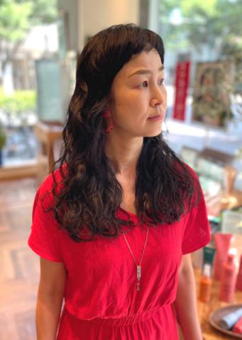 透明感のあるブラックカラーをのせて、前髪をカット。大人のお洒落モードスタイルの完成です!!