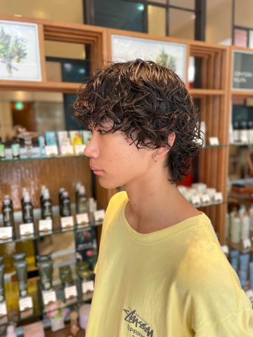 マッシュとウルフをお洒落なウエイトバランスでCUTで繋いで、リッジを感じるパーマをON!