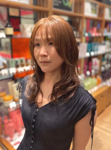 ブリーチを使わずに明るめトーンを叶えます。ブルーアッシュに、ちょこっとオレンジをプラス。