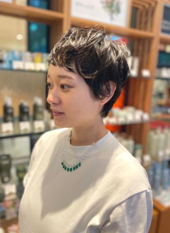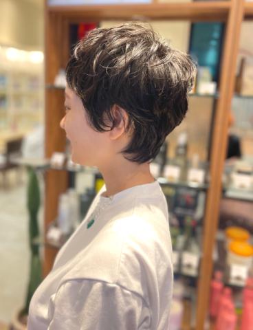 似合わせ重視のショートスタイルは、鏡の中で相談しながらレングス設定いたします。安心です!