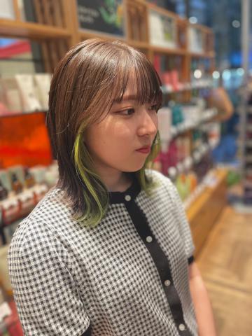 今回は、ライムグリーンをON!!ベースのトーンは抑えながら、モードな雰囲気を演出です。