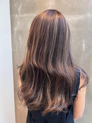 たっぷりとしたロングスタイルに細めのチップをブリーチでプラスしました。