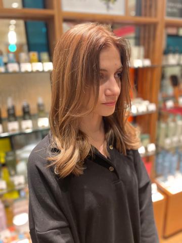 毛先に重さを残した、前髪長めのローレイヤースタイルが最高に似合ってます!