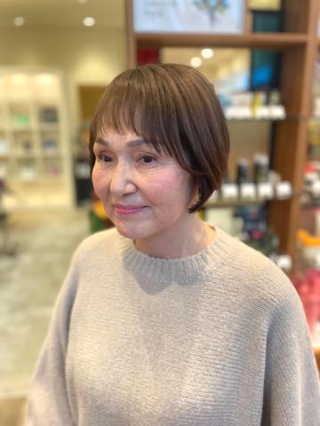 ラウンド気味にカットすることで、分け目のないノーパートなスタイルになりました!