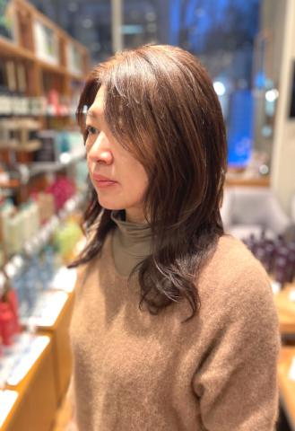 しなやかな髪の質感が◎ 中間〜毛先をアイロンでリバースにゆる巻き。素敵に仕上がりました!!