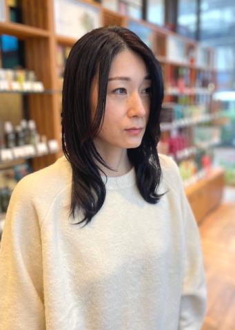 髪に潤い。しなやかな指通り。「美髪」。シックに楽しむ大人ミディアムスタイルの完成です!!
