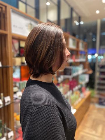 肩下まで伸びきっていた髪 → 肩上レングスにしっかりとCUTしました(ぎりぎり結べる長さです)