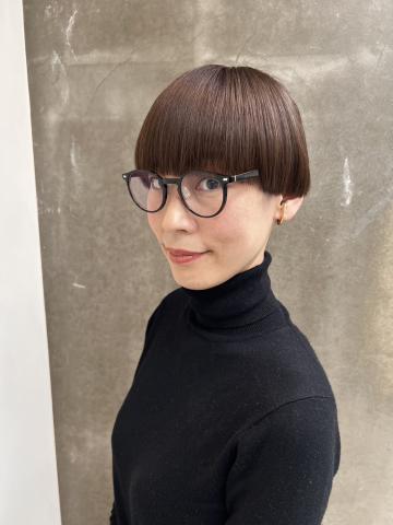 パツリとブラントなカットラインを残しながら、雰囲気を重視してつくります。