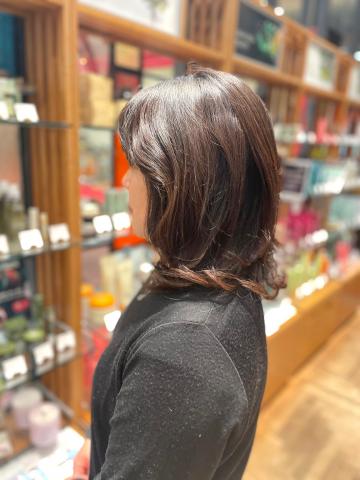 酸性ホットパーマを選択で、華やかでいて、優しさ溢れるミディアムスタイルへ!素敵な変身◎