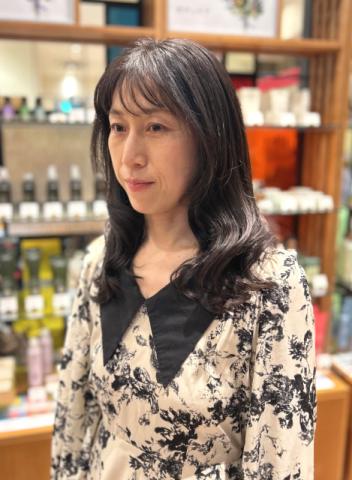 たっぷりとした量感のあるロングスタイル。表面の髪の長さを残してローレイヤーをON。