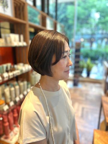 魔法のアイロンをササっと通して、ツヤツヤ美髪ボブの完成です!素敵な変身のお手伝い。感謝!