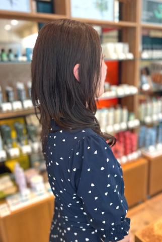 強い日差し & 乾燥でダメージした毛先はCUTしました。長さを切ると軽やかな印象が生まれます。
