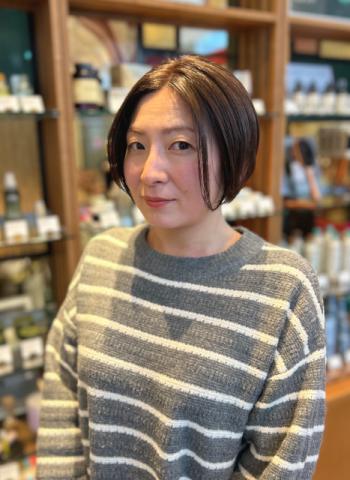 前髪はアゴの長さを残して、お顔を包み込むようにコーミングしてカット。