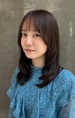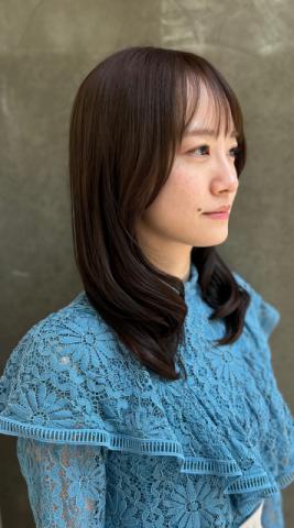 ワンカールミディーの清楚な雰囲気が魅力です。透け感バングを合わせて抜け感もプラス。