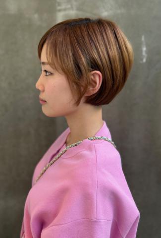 コロンとしたフォルムのミニボブを大人の雰囲気にアレンジ。