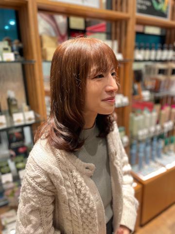 オレンジベージュのヘアカラーで女性らしさに磨きをかけて、NEWスタイルの完成です!!