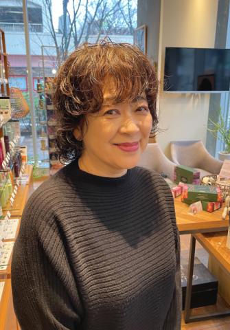 ナチュラルカールをいかしてCUT!今回は、ハンドブローで仕上げます。