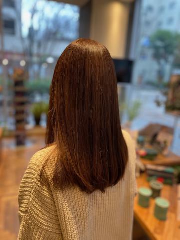 スムースな質感と、光沢が美しい髪色で、エレガントな印象に仕上がりました! 素敵!
