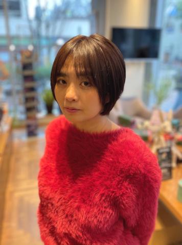 ヘアカラーには、アッシュベージュを選択。深みある落ち着いたトーンをのせてみました。