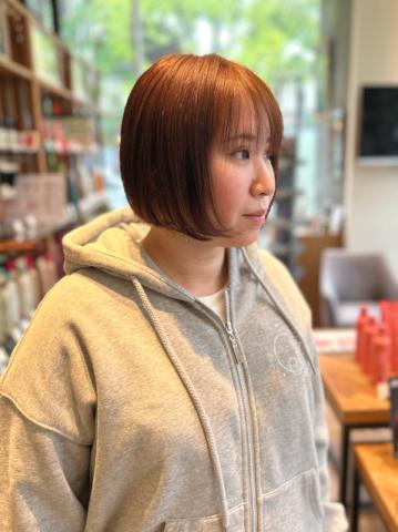 髪質に合わせて、毛先はブラントなラインで重さを残しながらCUTしました。