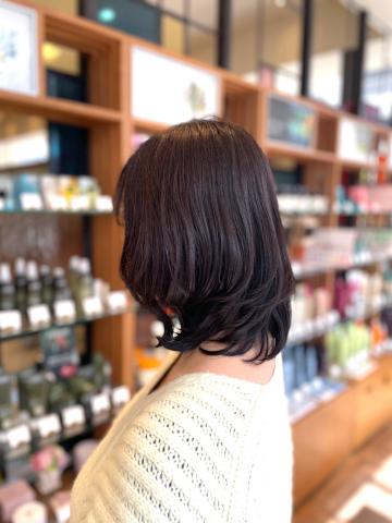 トリートメントカラーの「Dプラス」を選択で、潤いある髪色へ。